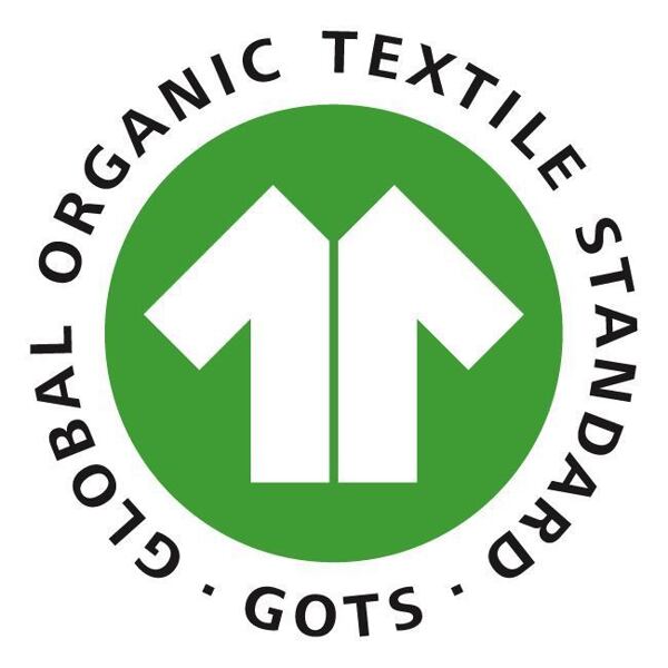 Nejpřísnější certifikace pro textilie vyrobené z organických textilních vláken. GOTS kontroluje celý výrobní proces od statku až po továrnu: od sklizně bavlny, tkaní vláken, až po výrobu finálního produktu a export výrobků.