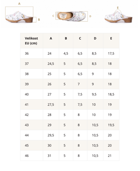 Jste rádi, že vám dřeváky padnou jako ulité a děkujeme, že se řídíte naší velikostní tabulkou.: