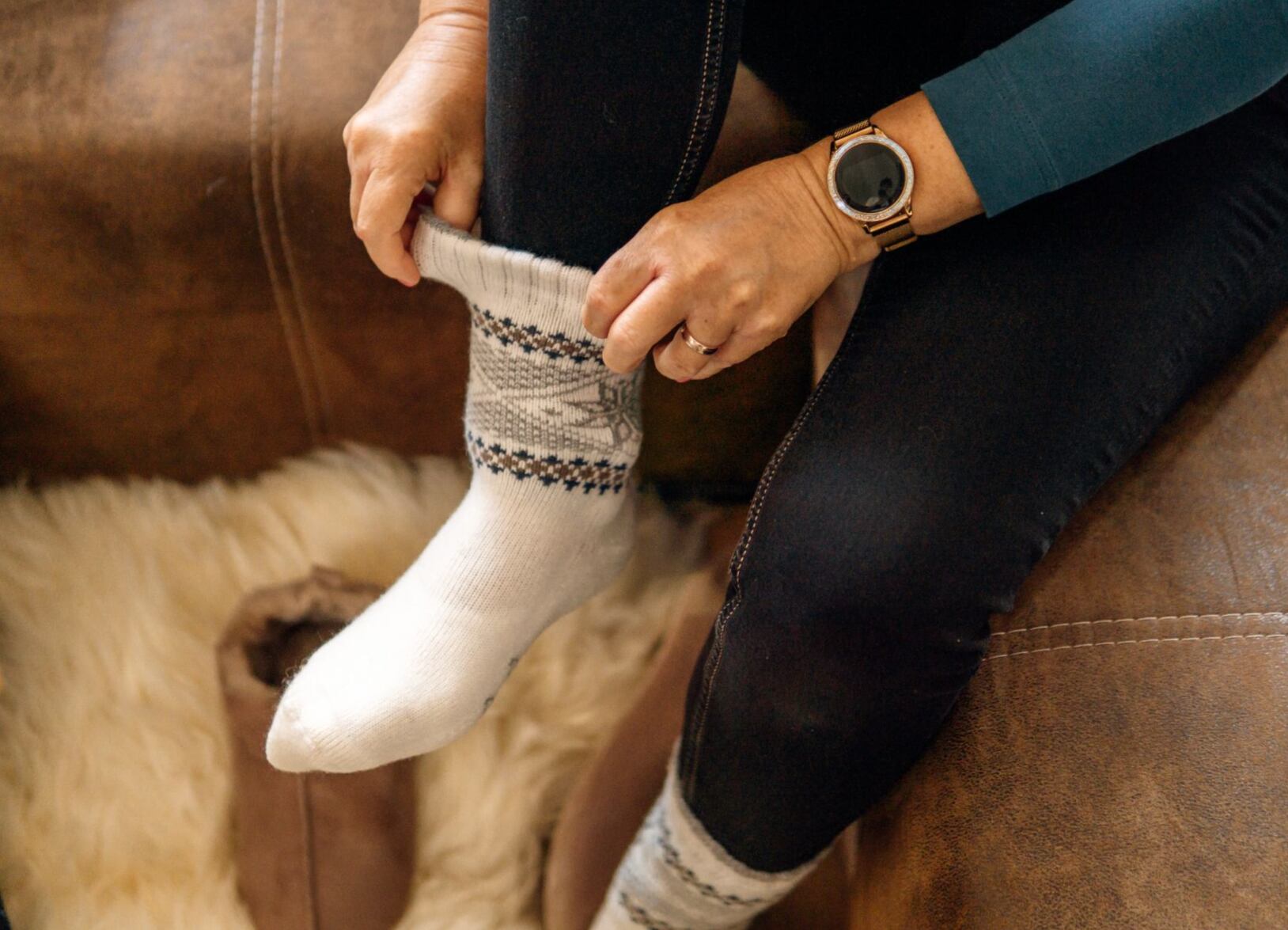 Která žena netrpí na studené nohy? A právě proto si u nás můžete vybrat z několika typů i vzorů hřejivých vlněných ponožek. Naše ovečky doporučují pořídit Merino ponožky vločka na běžné nošení a elegantní bílé, nebo šedé tradiční vlněné ponožky na slavnostní příležitosti. Ženám určitě udělají radost i teplé kožené papuče na klínku s ovčí vlnou, díky kterým se mohou cítit v teple i při stání v kuchyni. A nebo klasické kožené měkoučké pantofle taktéž s ovčí vlnou.