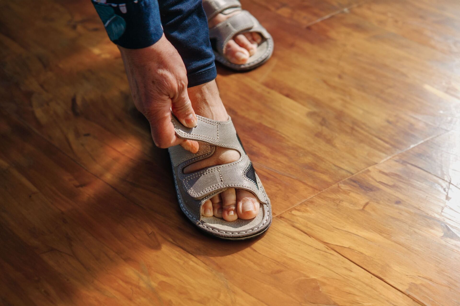 Ideální volbou jsou široké nazouváky pro dostatečný prostor s měkkou a pružnou podrážkou pro odlehčení chodidel při chůzi.Některým lidem mohou vyhovovat i nazouváky s vyvýšenou patou pro snížení tlaku při došlapu a ke zmírnění otoků.