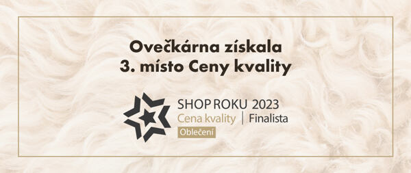 V soutěži ShopRoku 2023 Ovečkárna získala 3. místo Ceny kvality v kategorii oblečení. Za tento úspěch vděčíme právě vám, našim zákazníkům, kteří jste zapojili do hodnocení spokojenosti našeho e-shopu.