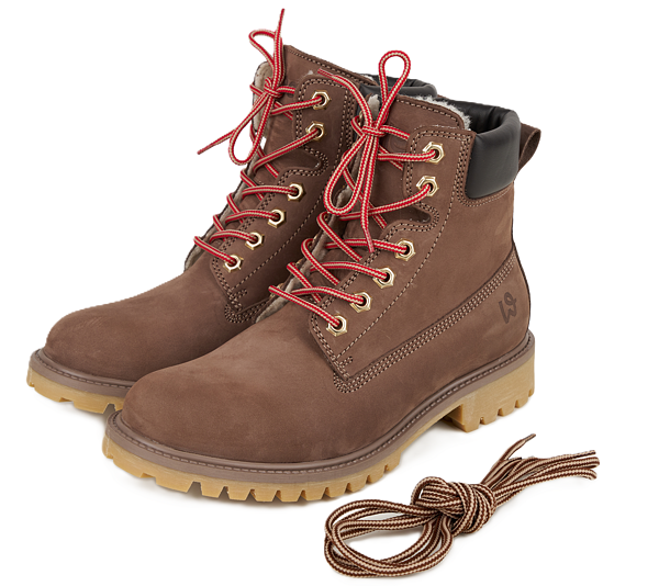 Huňaté farmářky Woolee v hnědé barvě jsou doplněny o dvoje různé tkaničky. Boty si tak můžete doladit podle svého stylu.